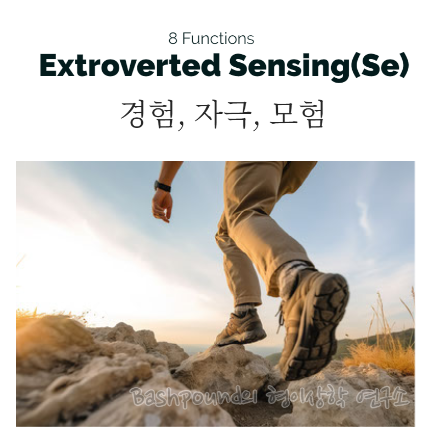 - 이 기능이 주기능인 유형(ESTP, ESFP)는 새로운 세계에 대한 탐구와 호기심이 넘치며 일단 해보기 혹은 해보기 전엔 모른다는 경험주의자적 성격을 지닙니다. 사람도 만나봐야 아는것이고, 어떤 경험도 해 봐야 안다는 것입니다. Ti가 부기능인 ESTP는 궁금한 건 일단 부딛혀 보면서 자신 만의 방식으로 깨달으려하고, Fi가 부기능인 ESFP는 사람이고 일이고 일단 부딛혀 보면서 자신과 맞는지 확인하려는 경향이 있습니다.
