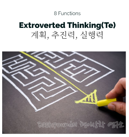 - 문제해결, 계획, 추론, 추진, 효율, 결정을 상징하는 기능입니다. 논리의 가치를 평가하고 비교하는 기능이라고 할 수 있겠습니다.